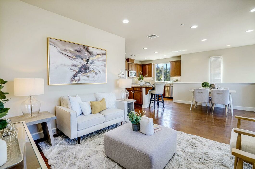A former model home built by Summerhill Homes. This bright end-unit townhome in sought-after Las Palmas showcases, easy, fashionable living at its finest. Open-concept gathering areas with hardwood floors and a large covered patio unfold from a gourmet island kitchen with stainless appliances, deep sink, and granite-slab countertops. Each bedroom is tastefully appointed, including a spacious, elegant primary suite featuring a walk-in-closet and luxury bath with dual vanities and oversized shower. Amenities like a tank-less water heater and duel pane windows maximize the home’s energy efficiency. Washer and dryer on the bedroom level for convenience. Attached two-car garage with a huge storage space. Access to community features like plenty of guest parking and a clubhouse with barbecue and play pad. Stroll to Las Palmas Park, Trader Joes, Starbucks, and top-ranking Cumberland Elementary (buyer to verify). Nearby are freeways, tech campuses, exciting Downtown Sunnyvale, and more!